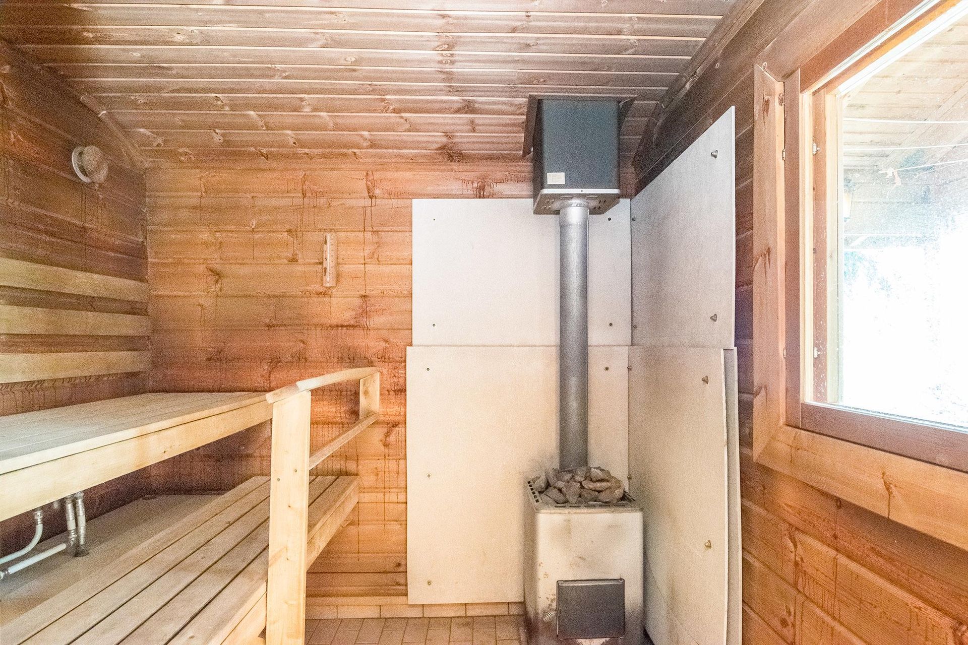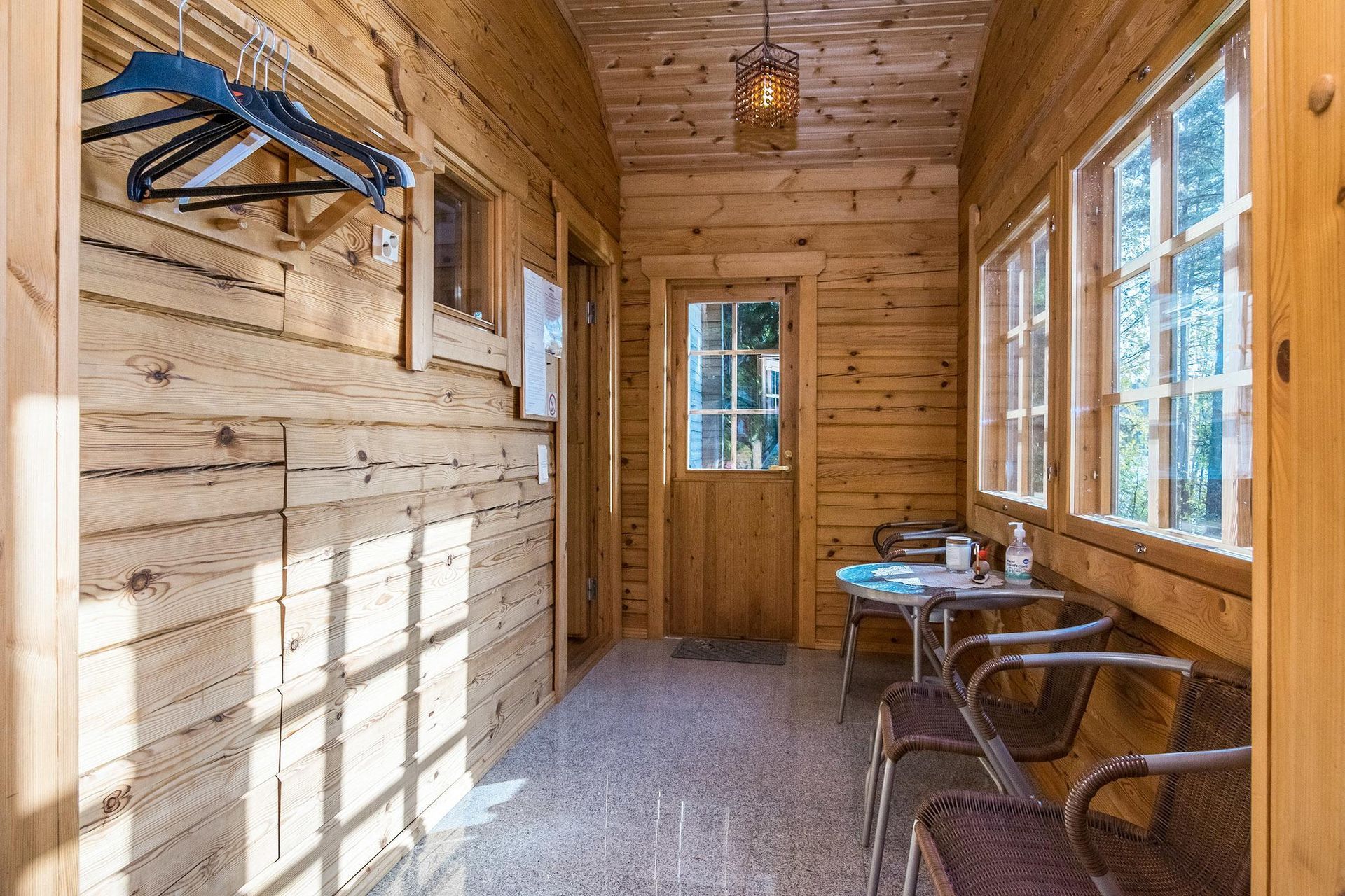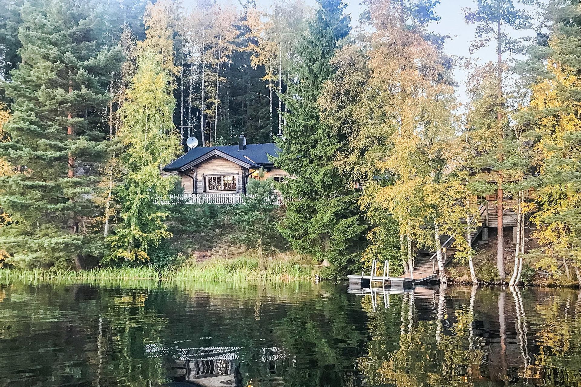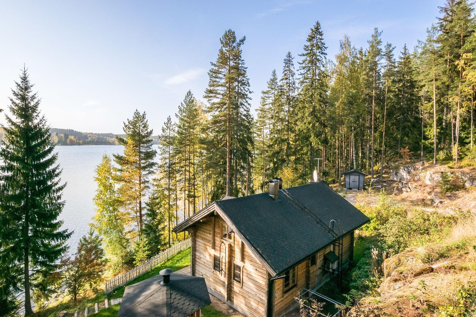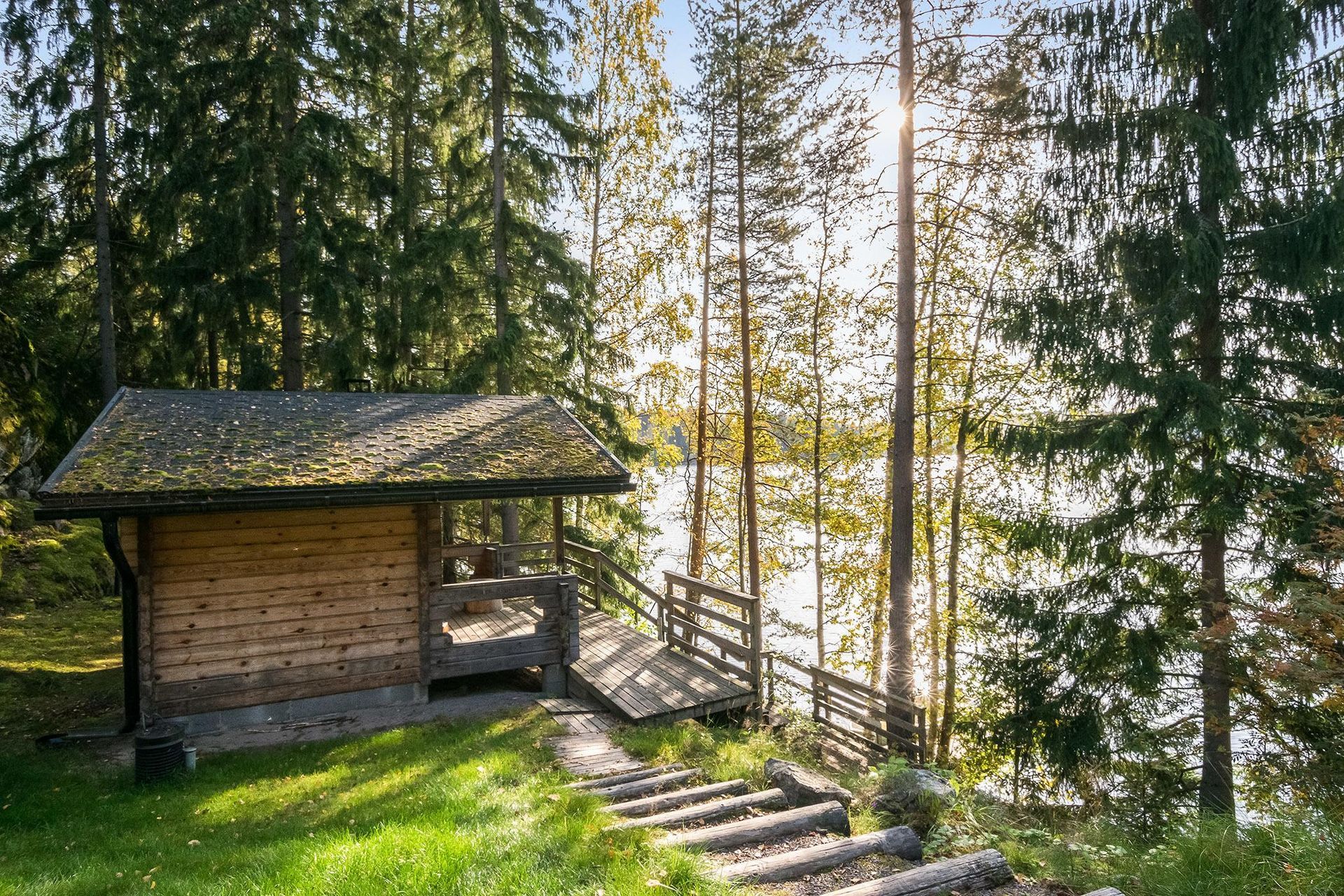 Korkeatasoinen hirsihuvila Kymijoen rannalla, etelään. Erillinen puulämmitteinen sauna.